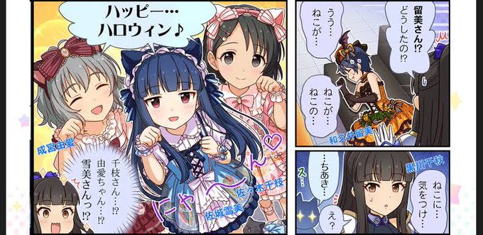 子子子子子子子子子子子子ガシャ ははぁん…見えたぜ巨悪の背中がよ! #デレステ #佐城雪美 #佐々木千枝 #成宮由愛 #黒川千秋 #和久井留美
