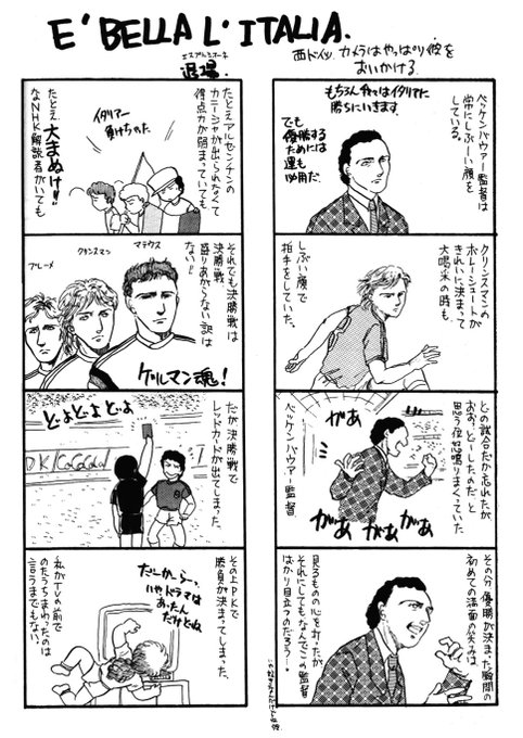 テレビのニュースから、皇帝ベッケンバウアーの死去が流れて来て、そんな年だったかと思ったけど78歳かあ…。少しだけ若いかなあ。私が1990年のW杯イタリア大会で見た時はもう監督だった(その時描いた漫画がある)皇帝とよばれた男だし、確かシュナイダーのイメージモデルじゃなかったかしら。