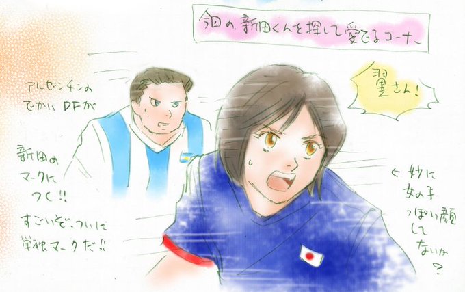 なんとアルゼンチン戦では新田が見開きで同点ゴールを決めるんですよ。もうメッチャ嬉しくて。だって結構、新田って過小評価されててGOLDEN23でもゴール決めてるのに「ポストが友達」とか決められないFWみたいに言われて。それがあのアルゼンチン相手に重要なゴール!もっと褒めて褒めて気分