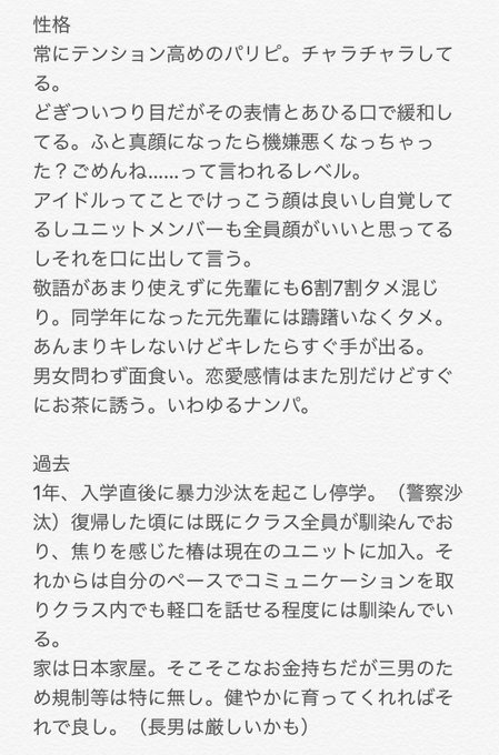 #しふぉスタ2期 タグこれかな?間違ってたら上げ直します! 2年キャラシだいぶまとまったんで投げ投げ!!! キャッチフレーズは「こんろんぐろ」って読みます綺麗な椿なので調べてみて!!ね!!