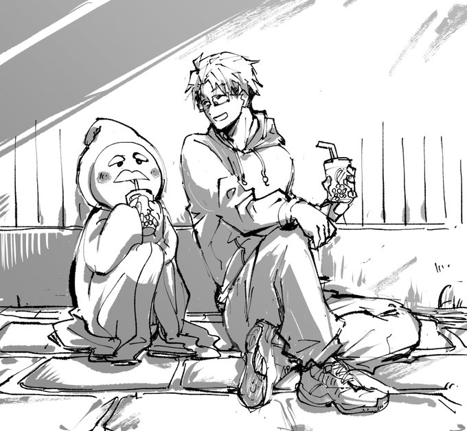 【お泊まり(1)】 平成「え?泊まんの?」 #改元浪漫譚 #元号擬人化 #擬人化 #平成くん #イラスト #オリジナル