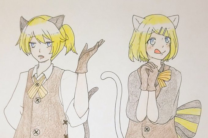 #鏡音版深夜のお絵描き60分1本勝負 「猫化」可愛くかけたと思います。