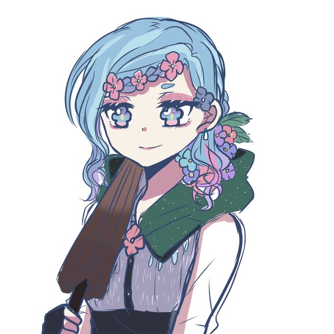 #3人で下書き線画塗りを交換して絵を完成させる びびちゃんとろきたんと一緒にやりました! テーマは「好きな夏の花の擬人化」でした!私のキャラデザはあじさいの擬人化の子でした〜