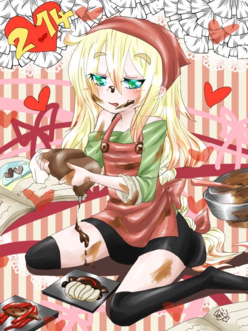 まーにーあったよーーヽ(^ω^)ノ← カレナのヴァレンタインは兄へのチョコ作りカラなのです しかし、背景うるさいな← 下部だけでも埋めときゃ良かった! #イラスト完成 #絵描きの輪 #バレンタイン