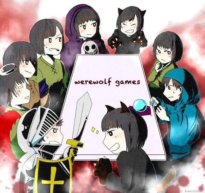 リア垢でバレー部のみんなを描いた! 部活終わりみんなでよく人狼してるので 人狼バージョンを描いたよ!
