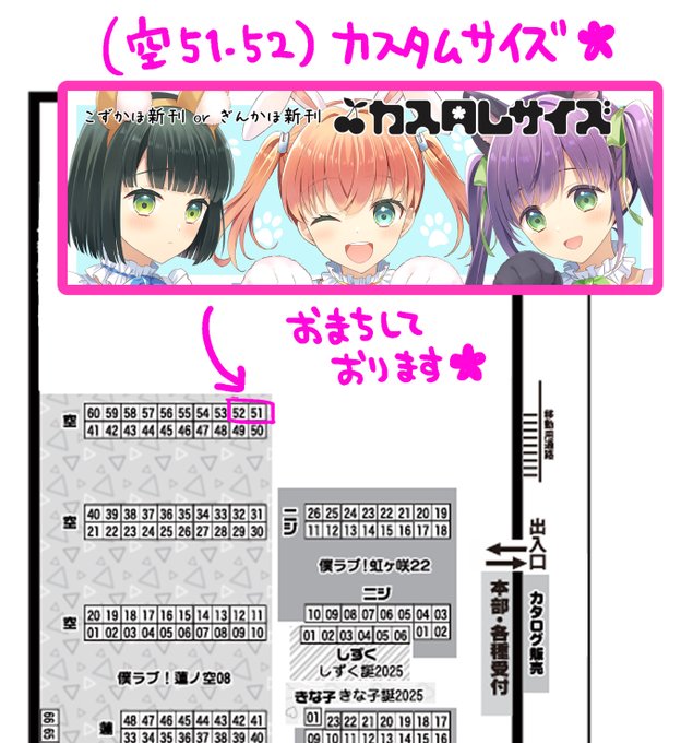 サークル【カスタムサイズ】空51・52で頒布予定です!メロンブックスさん専売で委託も予定していますのでよろしくお願いします~✨(予約が開始したら改めて告知します!あとお品書きも…)