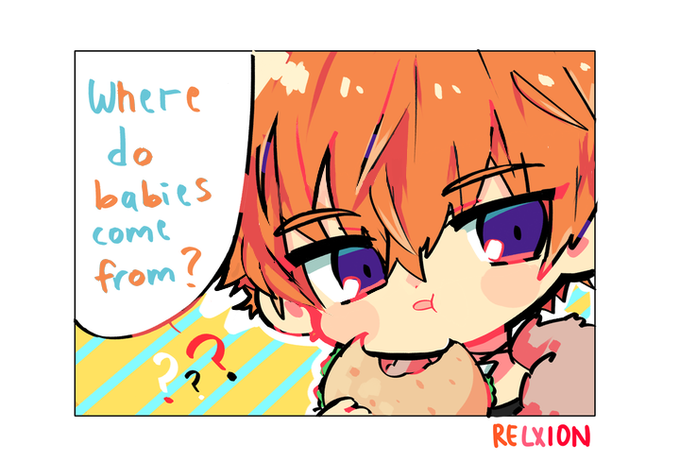 Beelz: Where do babies come from? 🍔 I tweet about this before and decide to draw it. #obeyme #obeymejp #obeymebeelzebub #obeymeasmodeus #obeymeluci