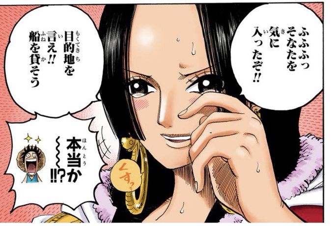 実際には国が滅ぶことを懸念するハンコック そして、ティーチに汚らわしい手で掴まれた時も見下しすぎて見上げてそうで見下せてる。 #今週のワンピ