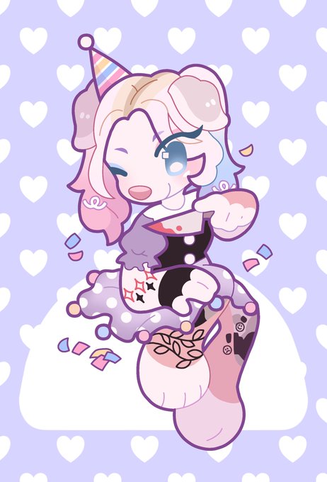 🎪a harlequin bunny jester that can sprout 2 extra hands from her back to juggle more balls! 🤡