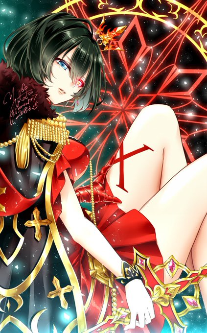 背徳ルシと相棒 今更だけど新衣装可愛すぎないかぁ…手袋黒ネイルキャミソール首に巻いてるリボン…ええ 好き。