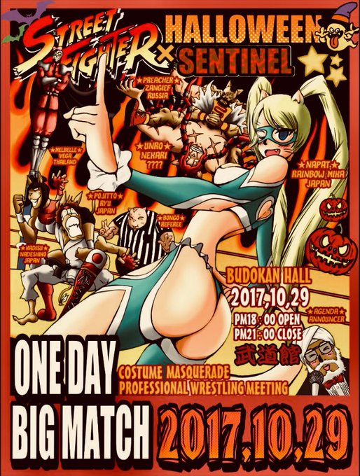 2016年のハロウィンイラスト🎃カプコンゲームの「ヴァンパイア」キャラに扮したナパット達が、孤児達を訪ねパーティーを催すとの設定でお話を描いています。僕自身数年前から微量ながら支援を行なっている関係から発想いたしました。