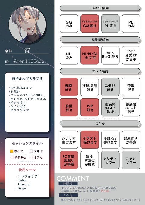 既に3月ですが、2022年もたくさん遊びます! よろしくお願い致します~~~~❣ #TRPG自己紹介シート #TRPG好きと繋がりたい
