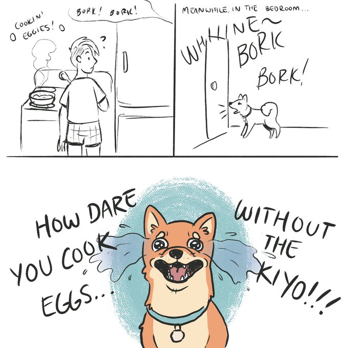 Kiyoshi, who loves to hover around me especially while I cook eggs (I give her the pan scrapings), was SO UPSET when she was not around while I was cooking this morning! She could smell them I guess 😂 🍳 🐕