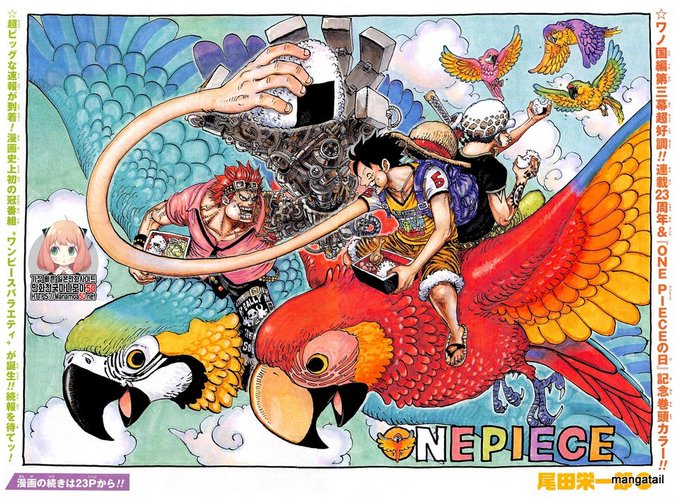 Happy 23rd Anniversary to the best story ever,Onepiece! Thankyou Oda for your hardwork! Thankyou for give us this masterpiece.The journey is near the end and i'm glad i've been reading this weekly since junior high school.