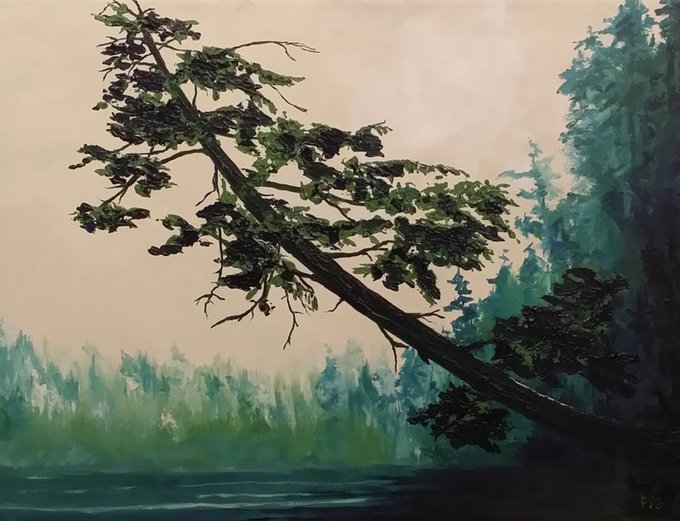 "Fir Tree High Tide Shoreline" by Peter N. Van Giesen evokes feelings of resilience, exaltation and hope. It is an acrylic on canvas painting, 18″ x 24″. Peter is a multi-award-winning artist and his art is in many private and public collectors. https://t.co/olIpix2Nbr