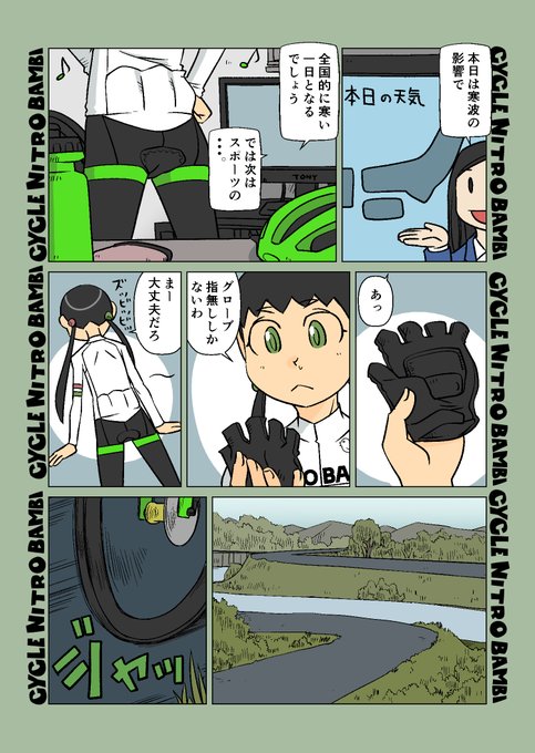 【サイクル。】学習しない二人。 今年は夏から秋をすっ飛ばして冬な様相なのでウエアの選択が快適なサイクリングの大事なカギですねー^^ #ロードバイク #サイクリング #自転車 #漫画 #イラスト #マンガ #ロードバイク女子