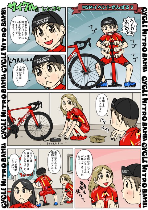 【サイクル。】MSMイベントがんばる3 #イラスト #漫画 #まんが #4コマ漫画 #ロードバイク女子 #ロードバイク #サイクリング #自転車 #自転車漫画 #自転車女子 #ウエイブワン #ナイトロバンビ