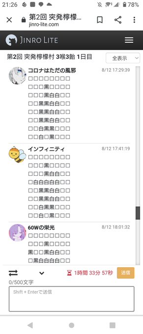 第2回 突発檸檬村 インフィティ/人狼/負け オセロは私で終わったので私の勝ちで良いかな? もし良かったら続きの対戦お願いします!