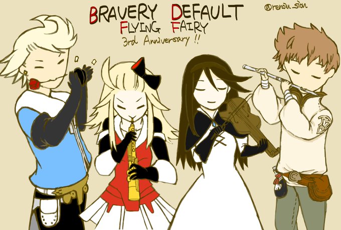 使い回しの絵というのも恥ずかしいので改めて。発売三周年をお祝い申し上げます。ノルフィルの演奏もとても素敵で、とても愛されているタイトルであると強く実感しました。絵はコンサートでの各必殺技曲のメインメロディ担当楽器で。