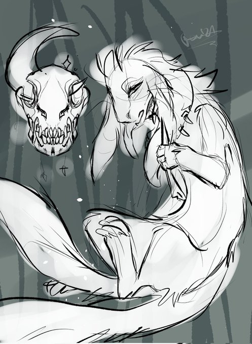 @ElkKaiju my real sona is this fella. hasnt gotten a name, just like our true self who hasn't connected to a name till now. thin and very light, just done with everything and not afraid to show how they are feeling.