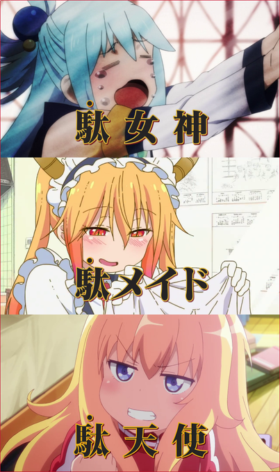 駄女神、駄メイド、駄天使 今期のダメヒロイン三人衆。 #このすば #maidragon #gabdro