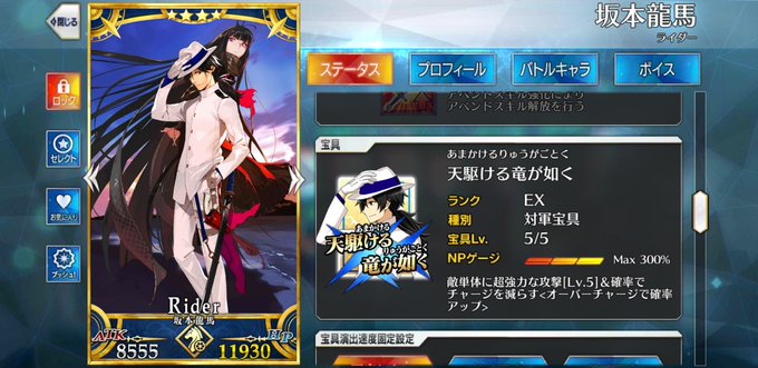 坂本龍馬さんの宝具が好きすぎてずっと見ていられる。お竜さんと一緒に笑っているのもだけど真剣な顔もどちも凄く良い(語彙力)