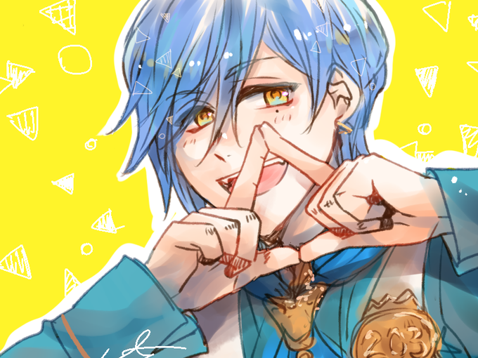 青い絵はこれです。空と飛行機雲と羽京さん。