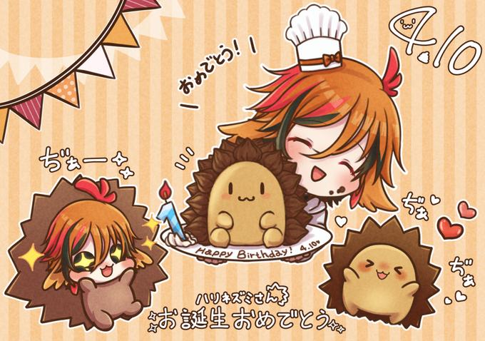 ハリネズミさんお誕生日おめでとう🎉🎂🎊 これからも元気いっぱいに暴れまわってね! #絵やんくっく