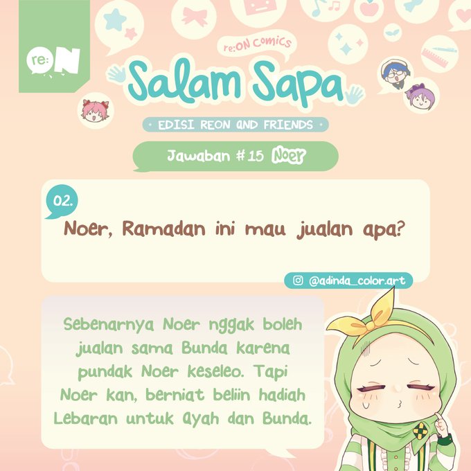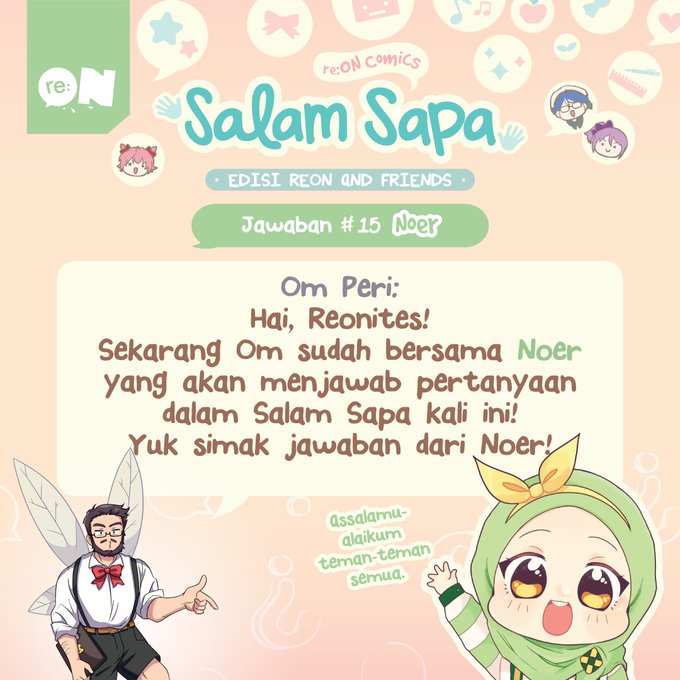 Reonites! Di #SalamSapa edisi Reon and Friends kali ini, giliran Noer yang akan menjawab 3 pertanyaan terpilih dari kalian! Apakah pertanyaanmu yang terpilih?