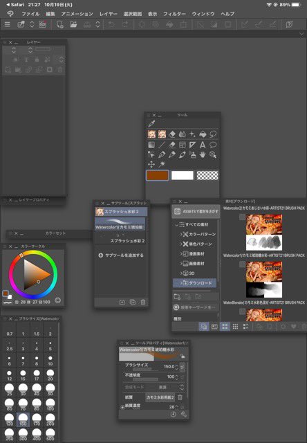 クリスタのアカウントと月額設定の紐付け終わり、カモちゃん先生のブラシ追加とクリスタ自体のカスタム中
