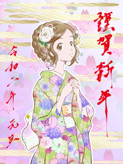お正月オリキャライラストの色違いバージョン。…3年前からいつもと違う感じで3人娘1人ずつに振袖着せてきましたが、今年のエリカでラストですー(*´ω`*)