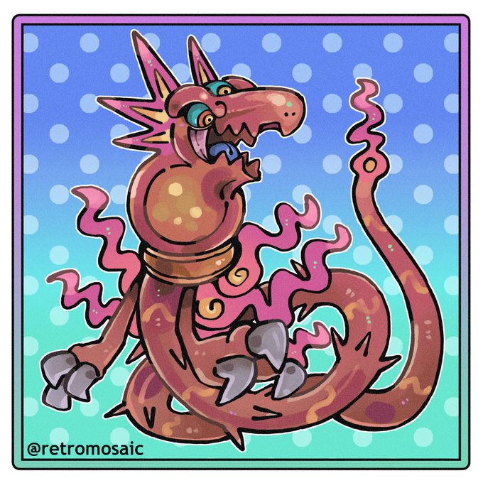 【No.072 カグツチ】 火を司る魔法生物。 地中のマグマ溜まりに生息しており、 カグツチの活動が活発になることで 噴火が発生すると考えられている。 この噴火により山が作られ、 さまざまな資源が湧出することから 一部の地域では「豊穣の神」として 祀られているという。