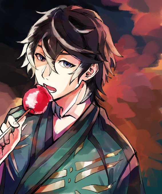 公式(orアニメコラボ)で浴衣腕まくりをする攻め(隣は受け)