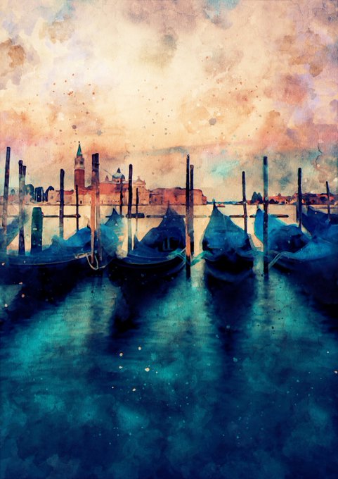 gondolas in venice, watercolor painting, original artwork Print, Printable wall art, Gift idea, abstract, fishing, nautical, boat #painting #art from just