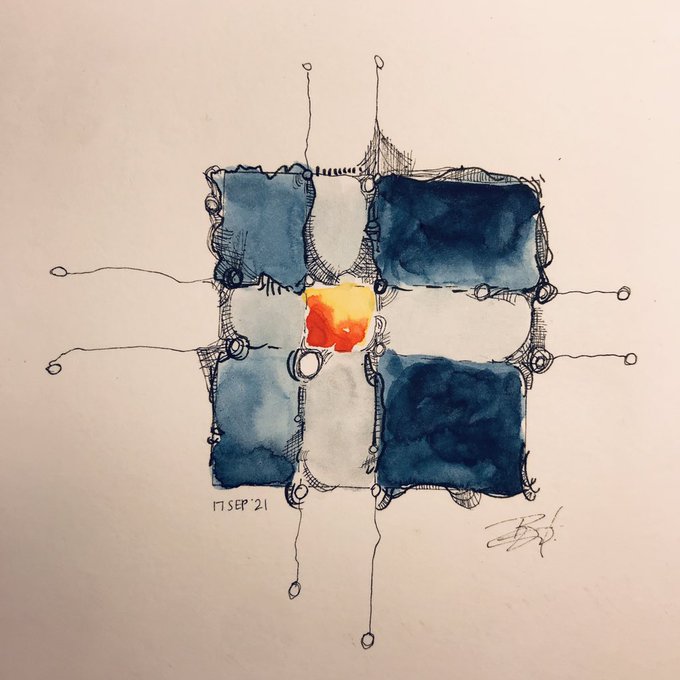 This feels way more like a cartoon than any of these tic tac toes I think because of the thick lines and the outline. It’s like peeking into the sun. #letterstomymother #dailypainting #art #abstractart #watercolor