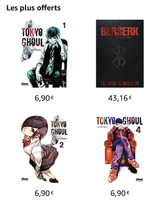 Tokyo Ghoul est fini depuis 2018 et pourtant il reste dans les meilleures ventes et offres d’Amazon dans la catégorie Manga Horreur. Comme quoi l’œuvre continue de toucher du monde malgré les années !