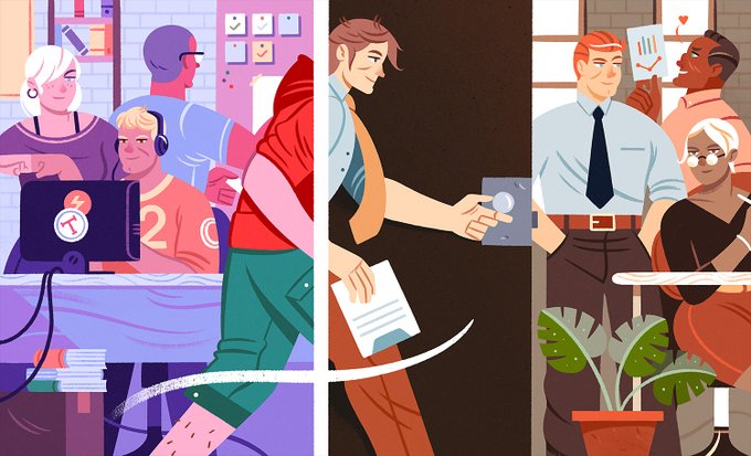 Number 4: an illustration I made for @tannerc on working at @Gem_Software. Used on a beautifully written Medium article. 9898 views (in 2,5 months).