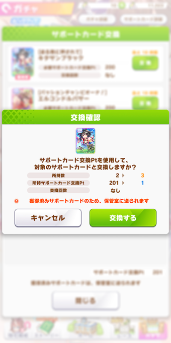 キタサンPU、140連の結果(通算201連)。