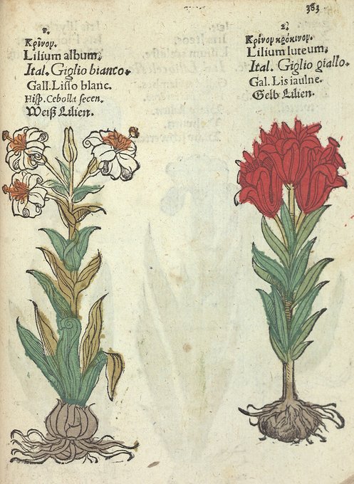 The RHS Lindley Library holds an important collection of 16th and 17th century herbals, including a copy of Pietro Andrea Gregorio Mattioli’s Kreutterbuch (1586) which features hand-coloured illustrations. #HeritageTreasures