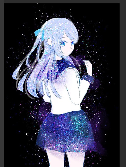描き途中の女の子の制服をラメラメな宇宙みたいな色にしてみました✨(*^^*)