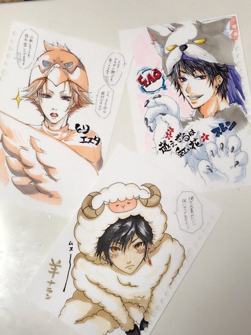 今日のお絵描きまとめ❤️ リクエストしたら楽さん描いてくれたのーーーー!!テンさんありがとうーー幸せ過ぎるぅぅ❤️❤️ 三枚目は「ナスラ動物園」wまとめ(*´◒`*)