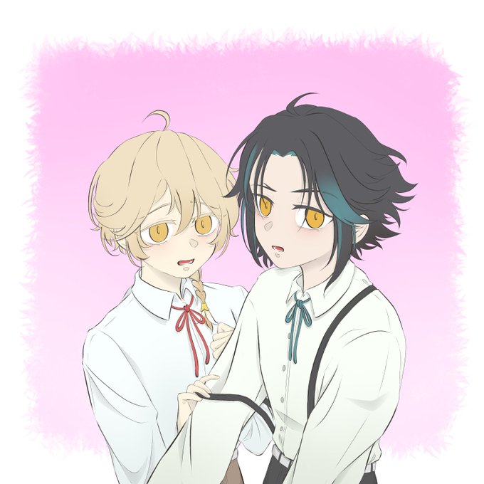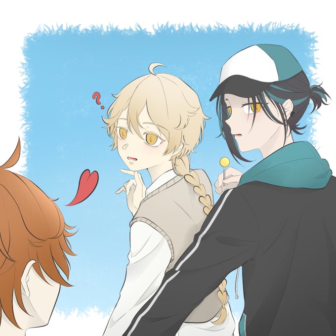 (xiao and aether are childhood friends ft. childe 😂) "some things never change." 💚💛