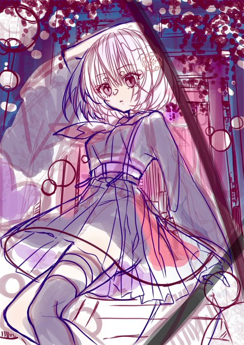 為次にいたっては位置取りしかしていない🙄 おはようございますきょうもいちにちがんばろう٩(´・ω・`)و #このタグを見た人はラフ画とその完成絵を見せる