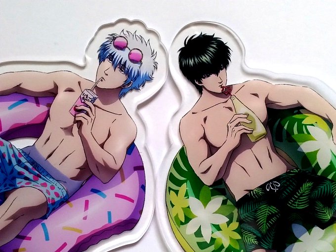 おはようございます〜昨日撮影もせずグーグー寝てしまいましたが、ナイトプール銀土のハガキとアクスタこんな感じです〜土方さん顎引いてるからただでさえ顔ちっさいのにさらにちっさい!かわいい!骨盤からの栄光の架橋ルートを楽しめるアクスタですな!バックに確かに水面置きたくなる〜!!