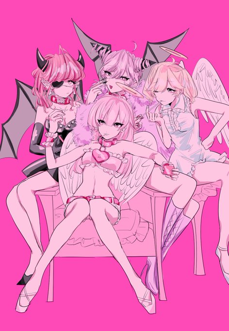 カップル展DMのイラストはこちら〜〜💕 ゆにこ女子との魔王男子の取り合い三角関係!?❤️💥❤️ なピンクスク〜ルガ〜ル🎀