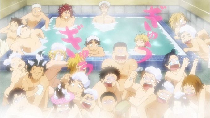 イケメン達が風呂に入るシーンだとぉぉぉ!!一部興奮気味の女子達であるが結果はエライ事に…っつーかさ。体育会系のバカばっかがフロなんてイベント行ったら当然こうなるって!!と言うか湯船の湯が半分以下になってたり尽く石鹸が無くなってたり。。。それが[男子高校生(脳筋)の日常]である