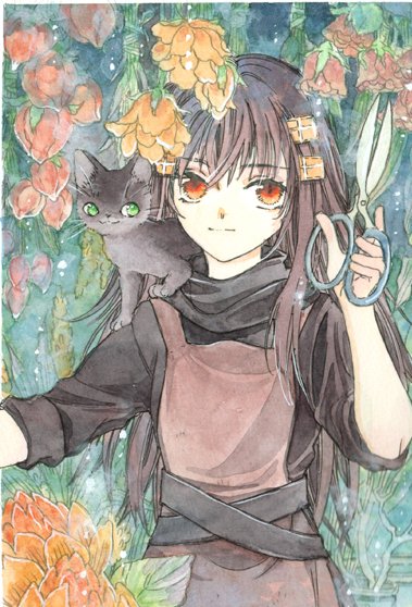 1枚目が花屋の探し物魔女さん、3枚目は椿乙女。この前のイエローの習作塗りをやってみました。