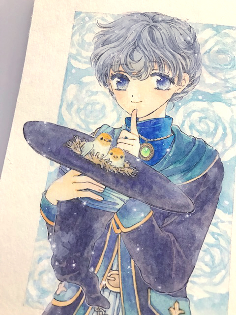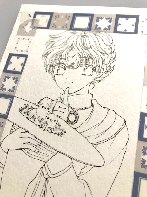 展示幅的に使える額は2つ!絵が3枚!ということで、全部できてからフレームレスをきめようと同じサイズの絵を描いてます。これは2枚目、雛の魔女さん☺️