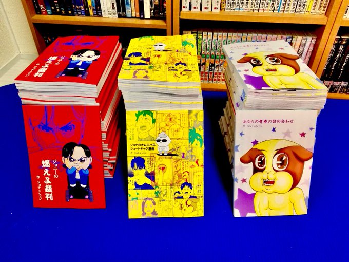 あと先考えずに大金かけて刷った『ジョナのオムニバスショートギャグ漫画』、『あなたの青春の詰め合わせ』、『ジョニーの燃えよ裁判』の3冊をご用意しておりますので、よしなに。