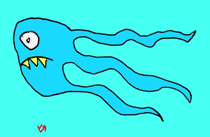 https://t.co/N5TUh8MlF4 "Flying Cyclops Squid" by Richard F. Yates #art #digitalart #drawings #humor #monsters